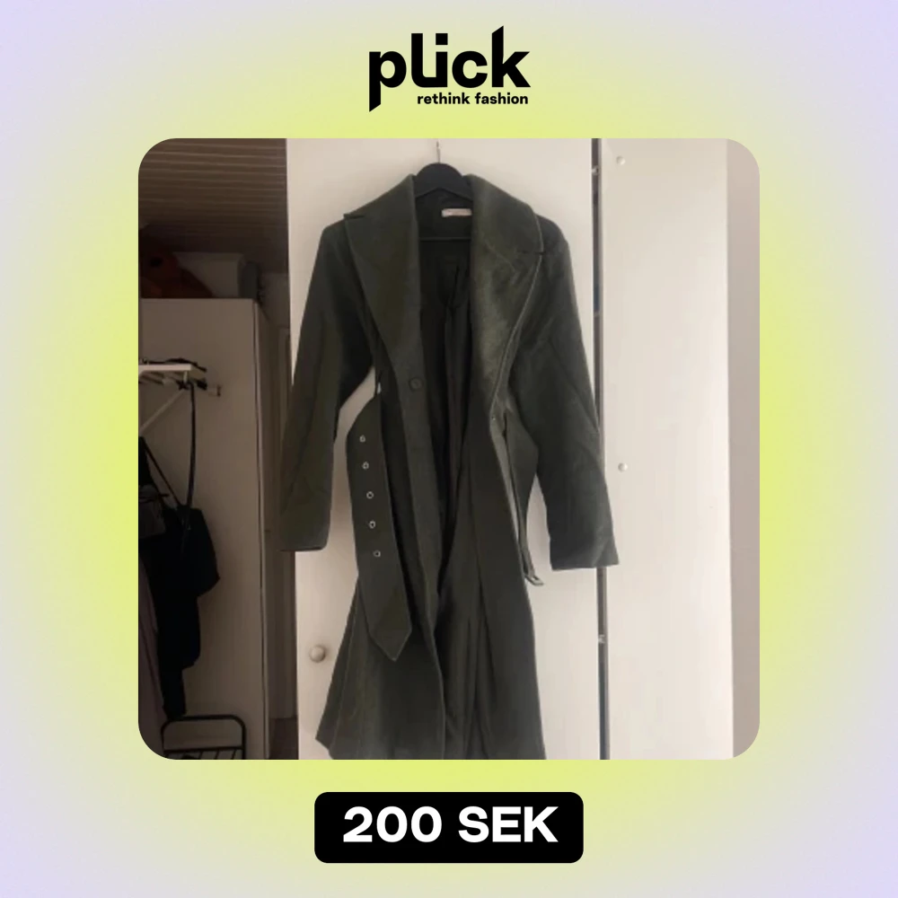 En grön lång vinter kappa med bälte.