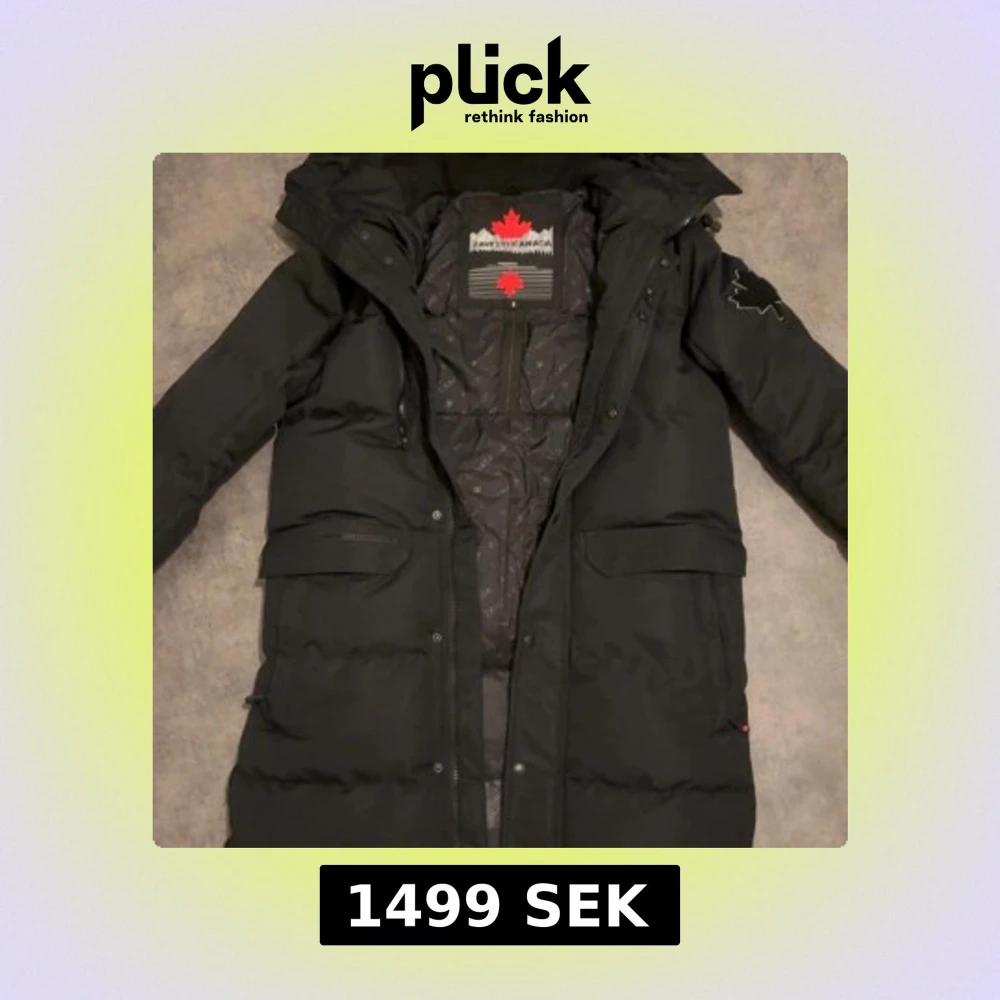 Säljer en svart lång dunjacka från Zavetti Canada med huva och flera fickor. Jackan har dragkedja och tryckknappar framtill, samt snygga detaljer som broderat lönnlöv på ärmen och ryggen. Perfekt för kalla dagar och riktigt stilren look.