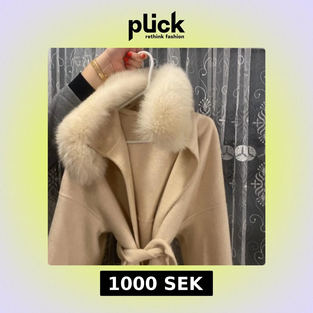 Elegant beige kappa med lyxig pälsdetalj runt kragen. Kappan har en knytning i midjan för en smickrande passform och är perfekt för kyligare dagar. Använd en gång köpt för 1500 men säljer för 1000 alltså 500kr billigare. Bra kvalite och en riktigt värmare! Äkta päls, fickor och även band! Köpt av ”furstockholm” på instagram!