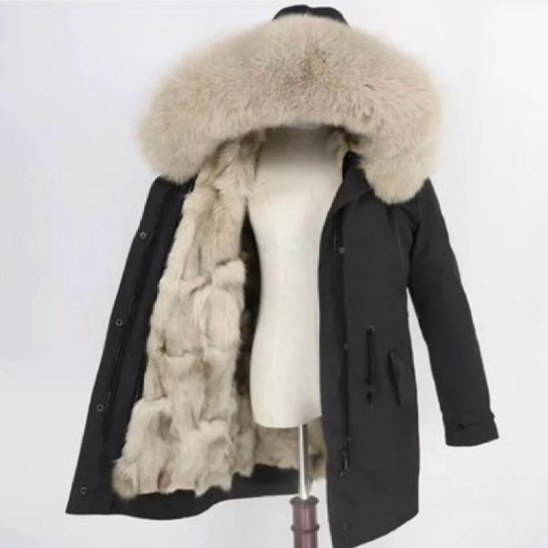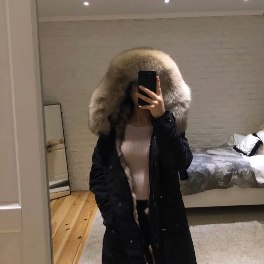 En vinter jacka med väldigt fin, fluffig och stor päls (äkta) på luvan men även inuti. Den är helt oanvänd, köpt utomlands & är för mig stor. Storleken är XS. Den är väldigt värmande och kan jämföras med min Canada Goose. Sänkt pris vid snabb köp!