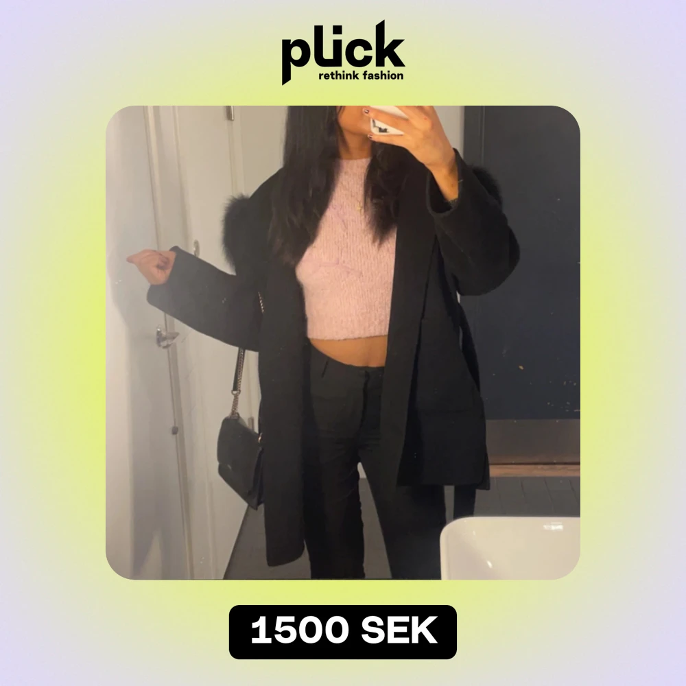 Snygg svart kappa med pälsdetaljer på kragen. Jackan har ett bälte i midjan för en figursydd look och långa ärmar. Perfekt för kyligare dagar när du vill hålla stilen.