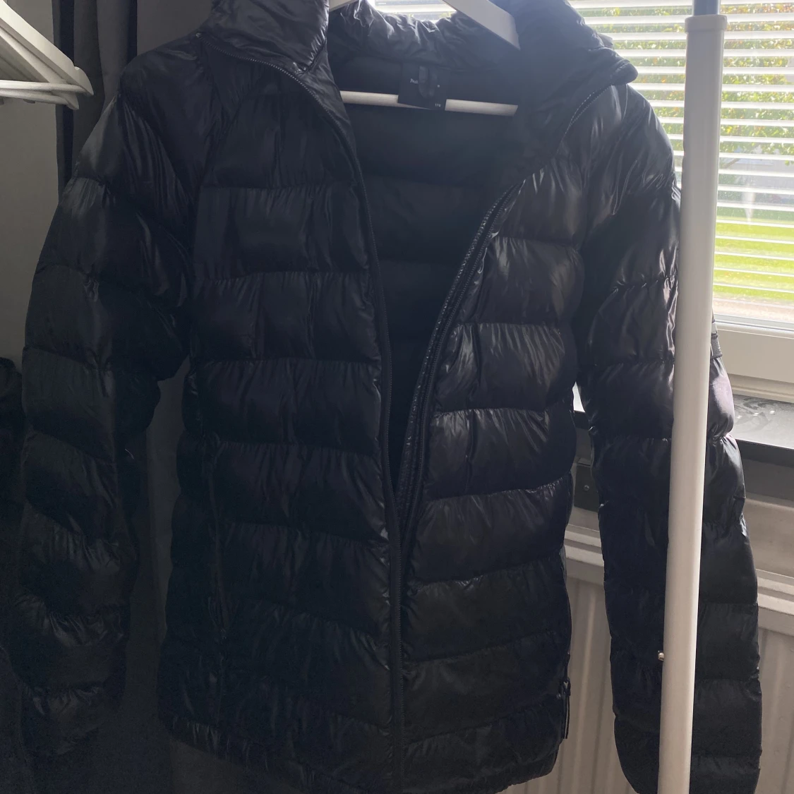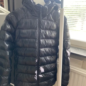 Jättefin jacka använd 1 vinter, i svart och glansig, storlek 170