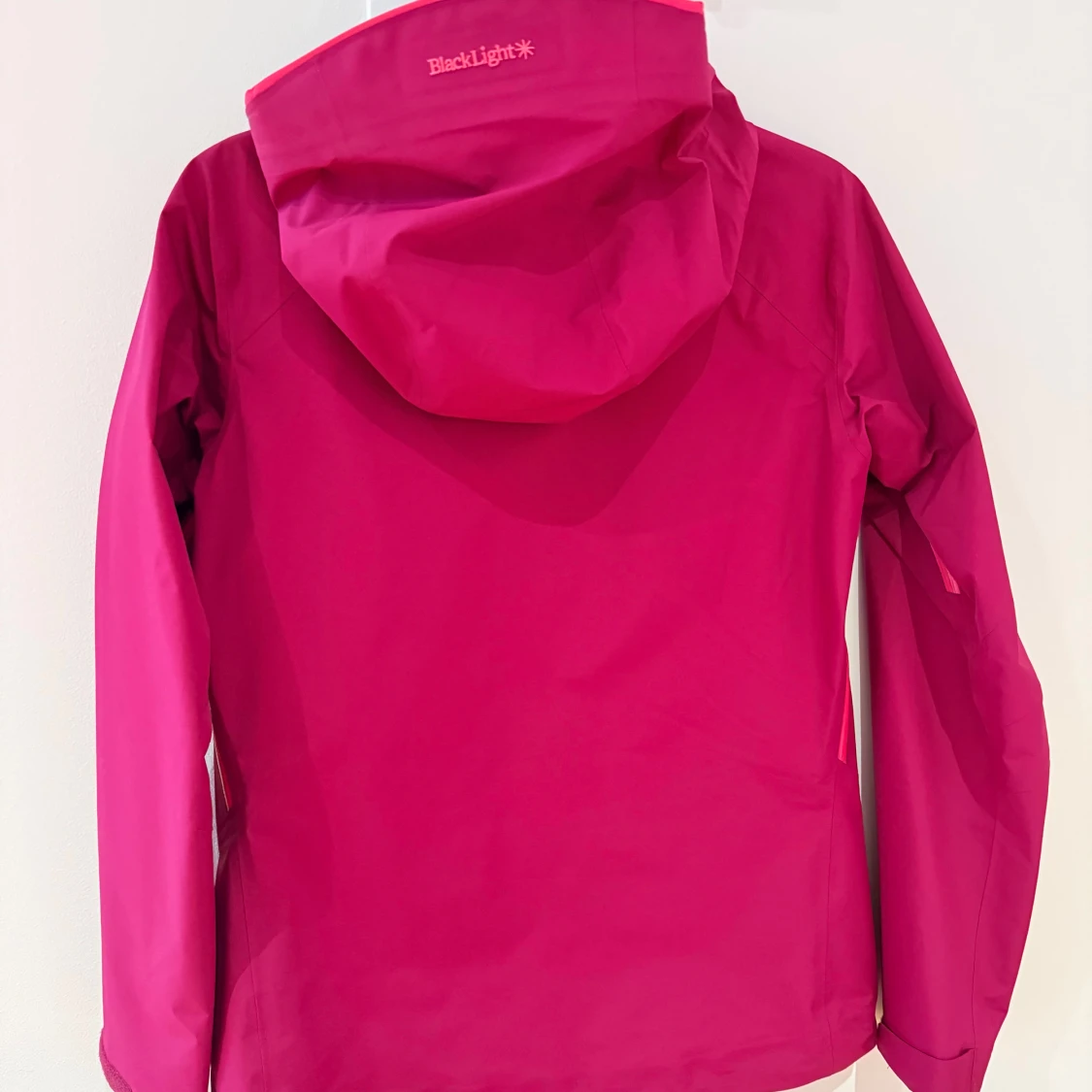 Snygg rosa vindjacka från Peak Performance med huva och dragkedjor i matchande färg. Jackan har två praktiska fickor med dragkedja och är tillverkad i slitstark polyester. Perfekt för dig som gillar att vara aktiv utomhus och vill ha en cool look. Skicket är nyskick då den är använd enstaka gånger och storleken är S