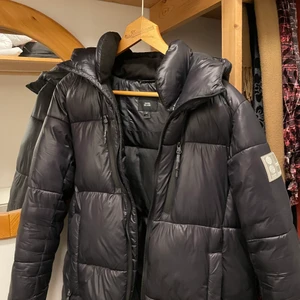 Säljer min vinterjacka som knappt är använd. Helt sjukt hur varm den är samtidigt som den inte är jättestor. Fodrade fickor tillsammans med innerfickor. Älskar hur materialet skiner/glänser lite lowkey. Originalpris 1500