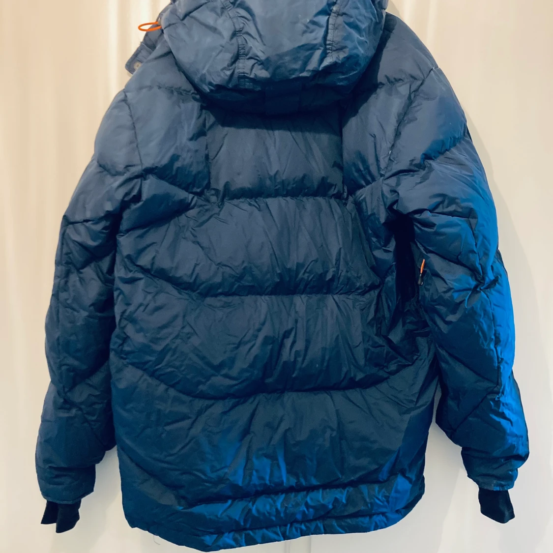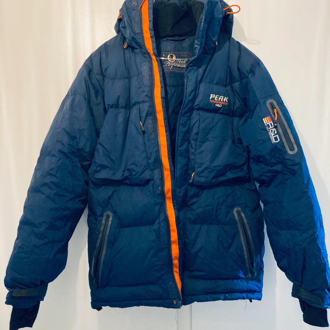 Säljer min otroligt varma och gosiga vinterjacka! Passar alla oavsett kön. Oversize! Storlek Small. Mörkblå med orangea detaljer. Det går att ta bort luvan! Gott skick!