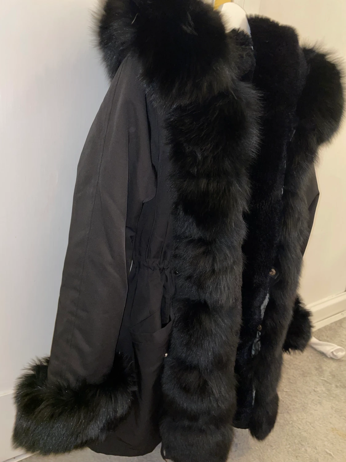 Säljer min Fatima parka från femeninaofsweden. Den är i nyskick och rökfri. Går att justera i midjan med band Storlek S, All päls är avtagbar Säljer för 2200 köpt för 4000 kr kan gå ner i pris snabb affär