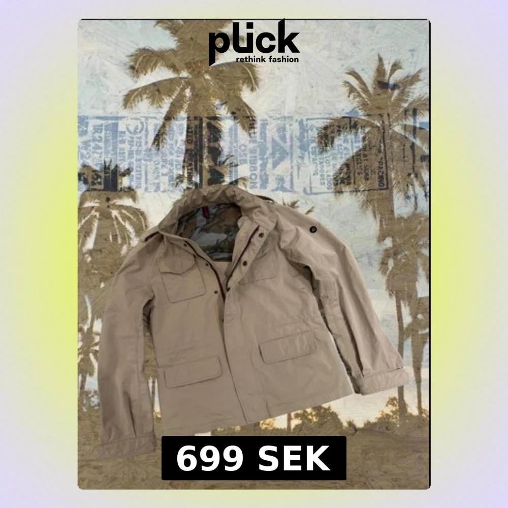 Snygg beige vindjacka med camo-mönstrat meshfoder och coola detaljer som röd och marinblå dragkedja. Jackan har flera fickor med lock och praktisk huva. Perfekt för dig som gillar streetstyle och funktionella plagg.