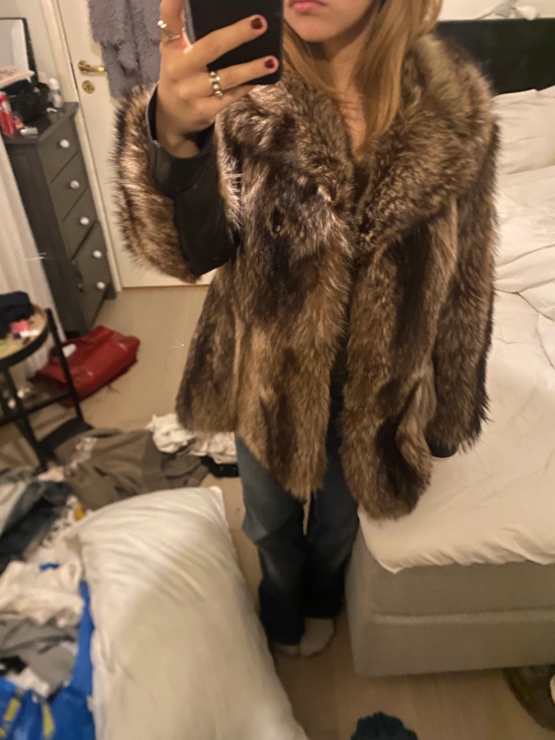 Så fin pälsjacka i äkta päls som jag köpte i höstas och använder jättemycket men säljer då jag hittat en annan jag gillar mer. Hål i armhålan men stör ingenting. Jackan är även ny kemad
