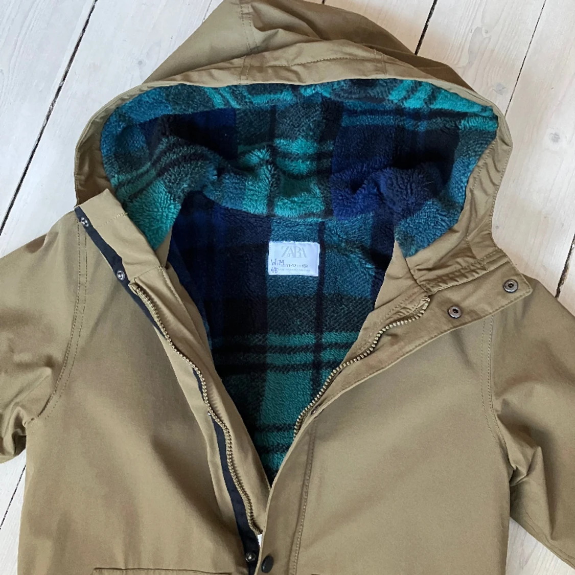 Väldigt fin och skön vinterjacka med rutigt fleecefoder. Ser ut som ny.