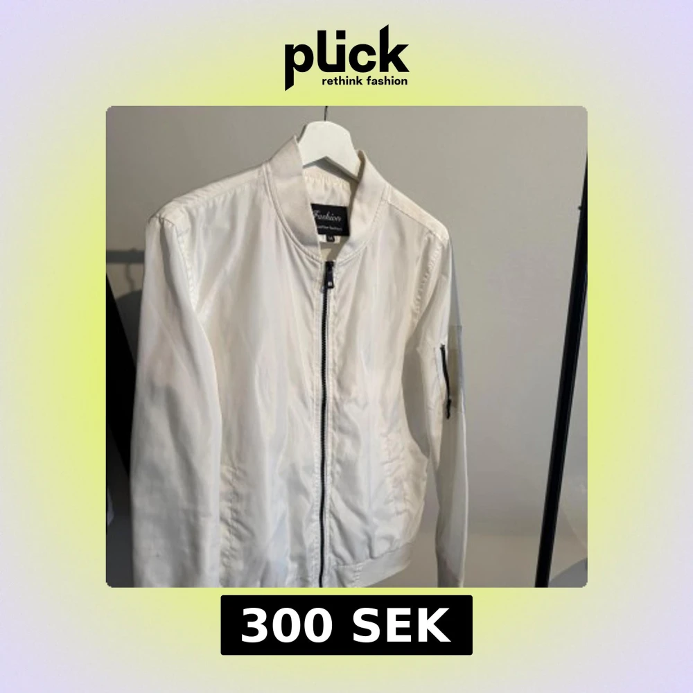 Snygg vit bomberjacka med klassisk passform och dragkedja framtill. Jackan har ribbade muddar, fickor på sidorna och en extra ficka med dragkedja på ärmen. Perfekt för dig som gillar en clean och stilren look.