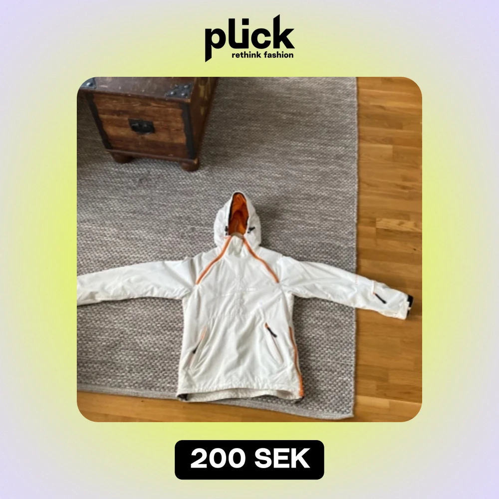 Vit och orange vinter jacka, använd ett fåtar gånger