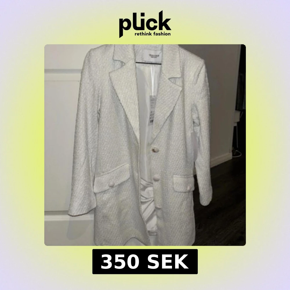 Elegant vit kavaj med texturerat tyg och klassisk krage. Kavajen har långa ärmar och knappar framtill samt fickor med lock. Perfekt för en stilren look.