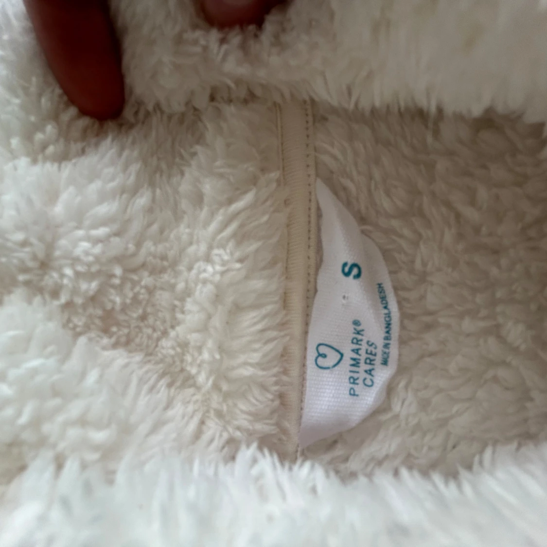 Mysig vit teddyjacka från Primark i storlek S. Perfekt för kyliga dagar med sin fluffiga och mjuka textur. Jackan har långa ärmar och en enkel design utan krusiduller.