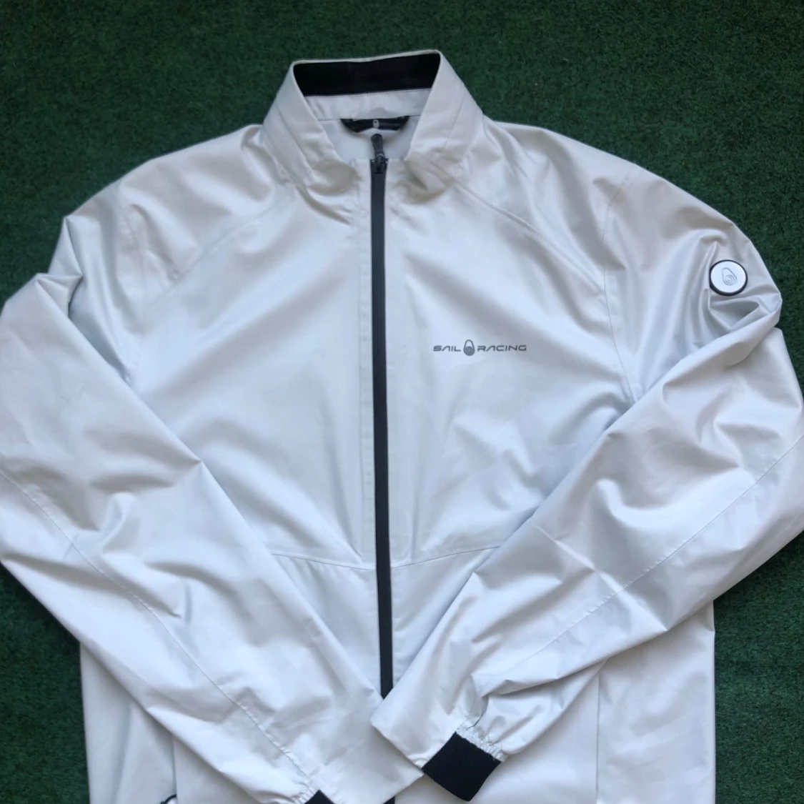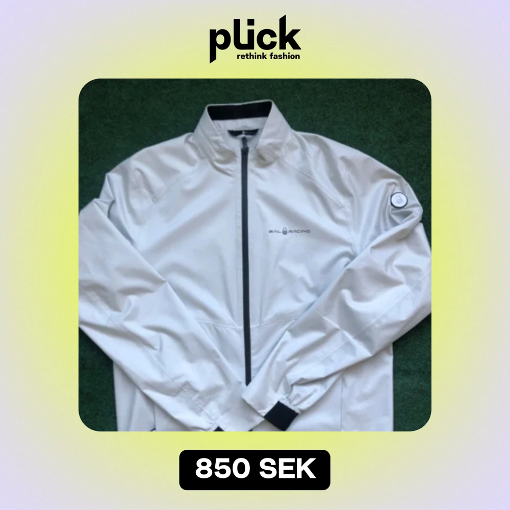 Säljer en stilren vit vindjacka från Sail Racing i storlek medium. Den är perfekt för vår och höst, och har en snygg logga på bröstet och ärmen. Materialet känns slitstarkt och är av hög kvalitet.