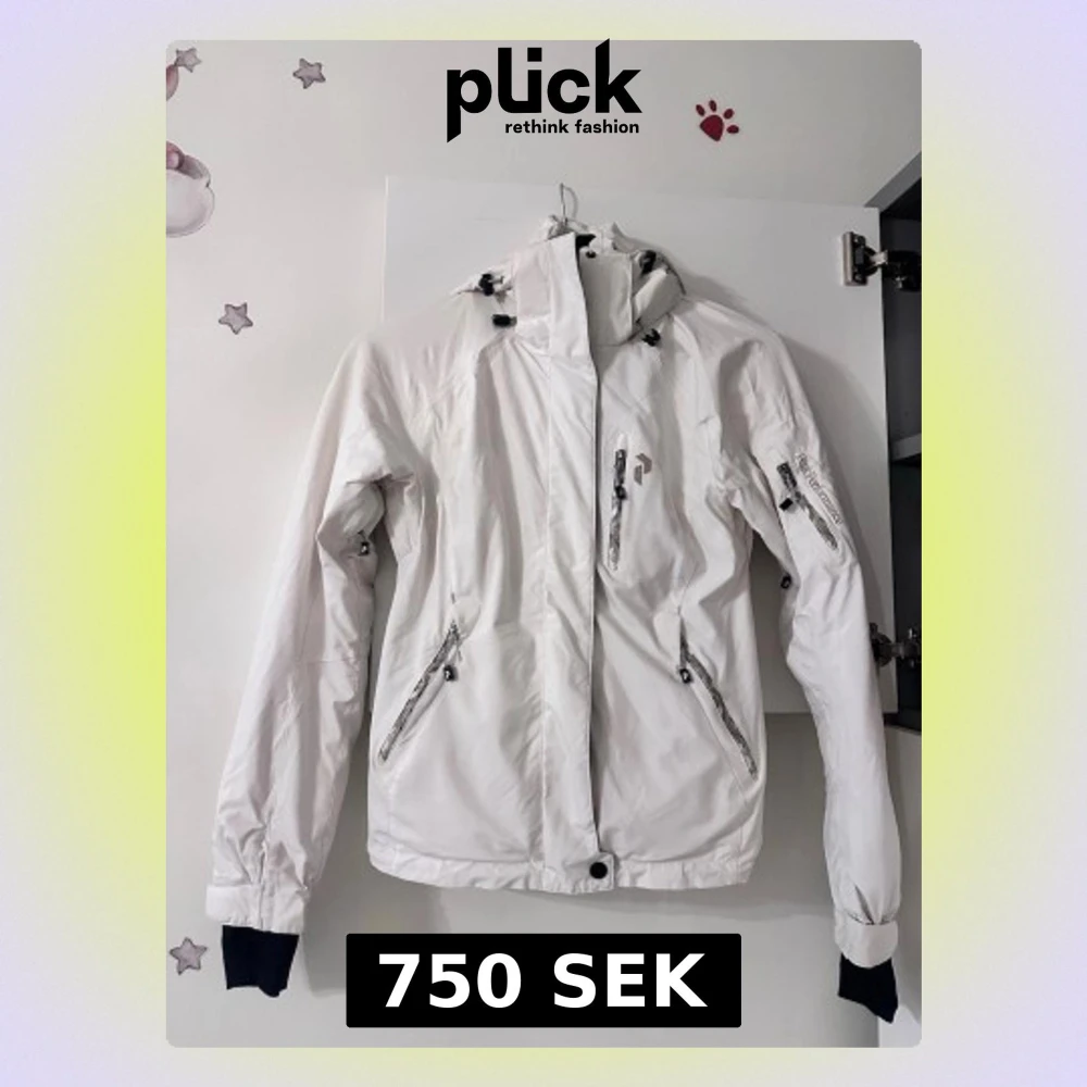Säljer en vit vinterjacka från Peak Performance med huva, flera dragkedjeförsedda fickor och snygga detaljer. Jackan har lång ärm, justerbar huva och innerfoder. Perfekt för kalla dagar och har en clean look med diskreta loggor.