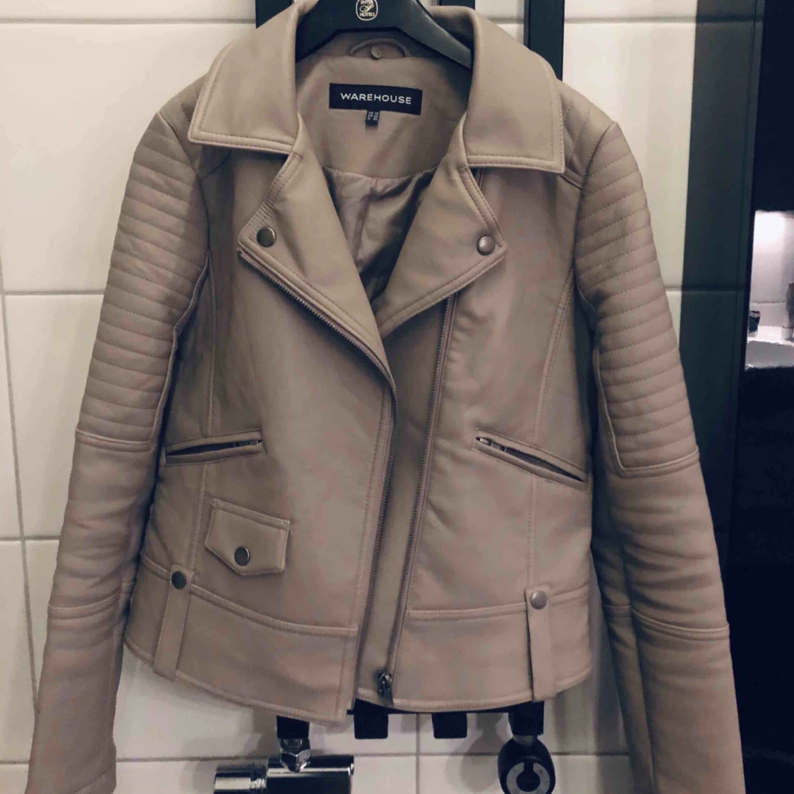 Fake-skinnjacka Använd ca 2 gånger= som ny Två fickor med dragkedja Står i jackan att den är storlek 38 men skulle säga att den lutar mer mot storlek 36