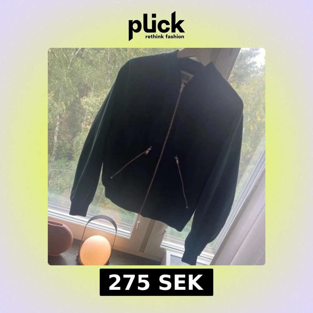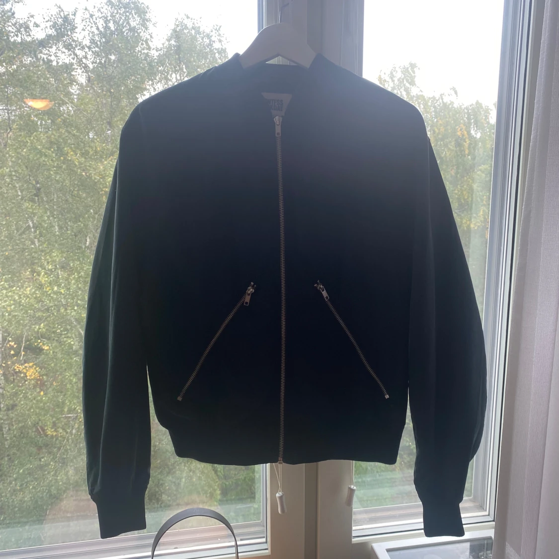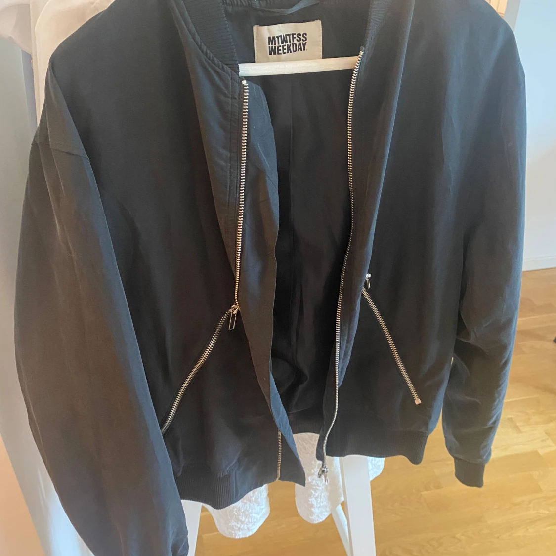 Svart bomberjacka från Weekday med silverfärgade dragkedjor framtill och på fickorna. Jackan har ribbade muddar vid ärmslut och nederkant, samt en klassisk rund krage. Stilren och enkel oversize design.