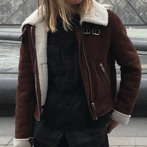 Otroligt snygg brun mocka jacka från Weekday. Liknande en skinnjacka fast med tunn fordring inuti. Storlek S och fungerar lika gärna som ha knäppt som öppen. Silvriga detaljer så som fickor och spännen på kragen. Köparen står för frakten🥰 nypris 1000kr säljer för 300!!