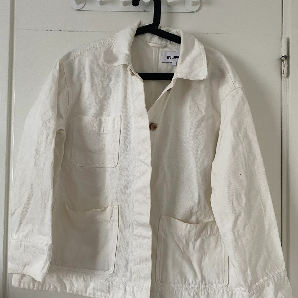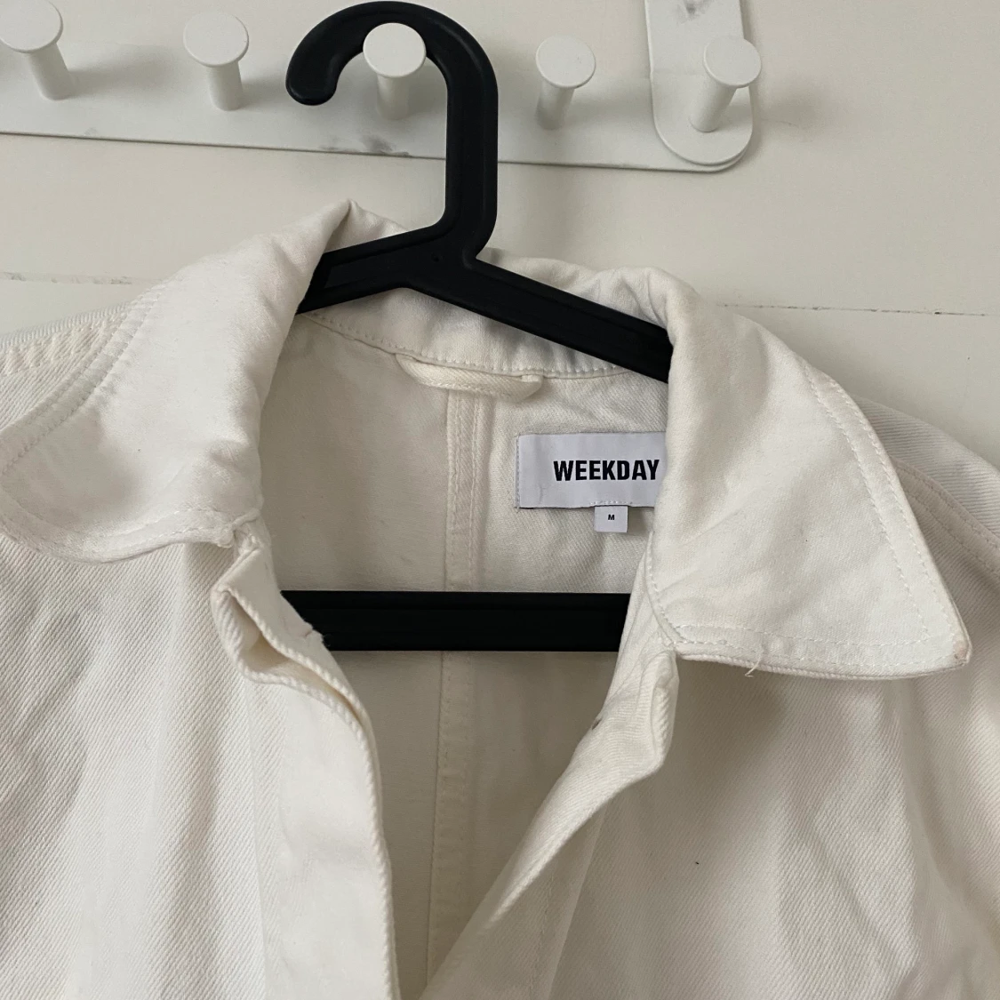 Härlig jeansjacka i vit storlek M, bra skick och perfekt för våren och sommaren!