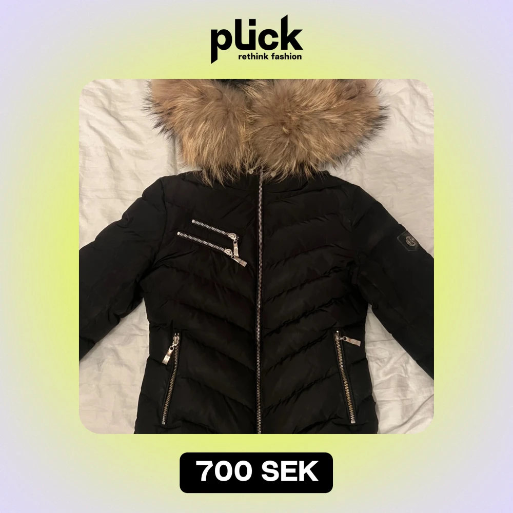 Säljer en snygg svart Hollies dunjacka med stor fluffig päls på huvan. Jackan har dragkedjor och en cool detalj med en logga på ärmen. Perfekt för kalla vinterdagar! 🖤Lite slitage på kedjorna.