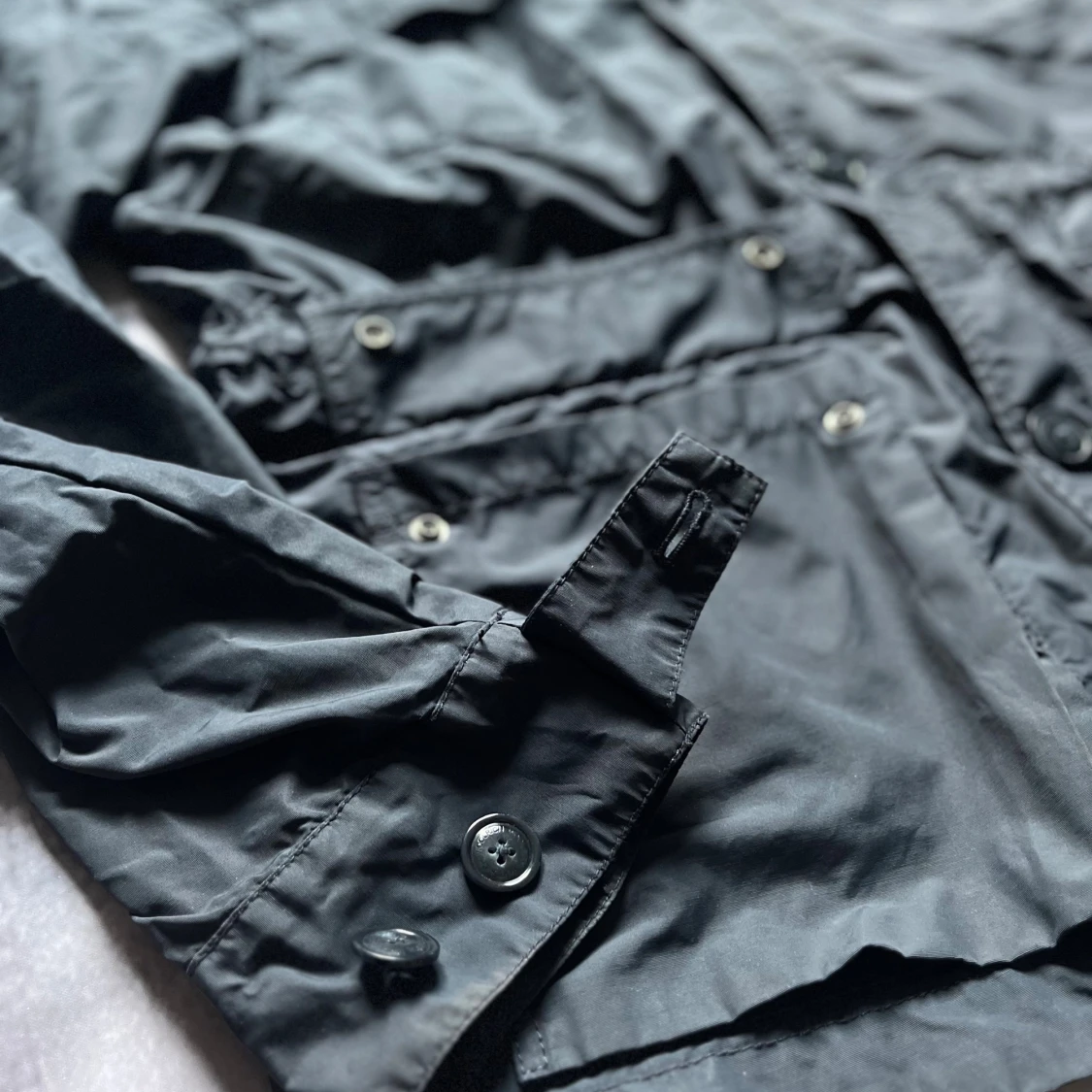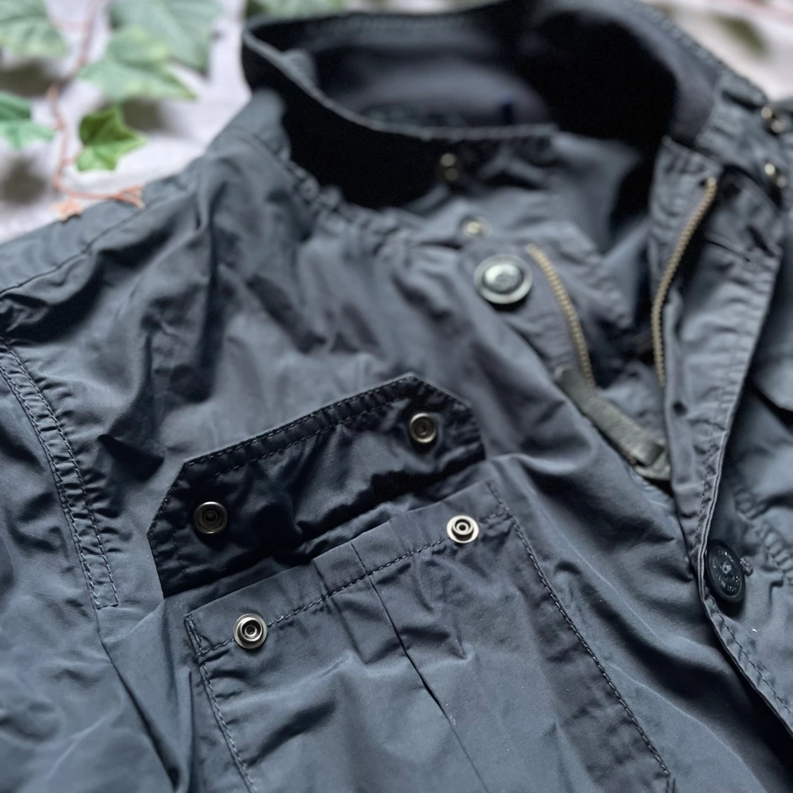Jackan har en lätt glansig yta, fyra framfickor, dold dragkedja och knäppning framtill samt justerbar midja för perfekt passform. 🎨 Färg: Svart 📏 Storlek: EU storlek L, USA storlek M (normal passform) 📐 Mått: Fråga ifall det önskas! ♻️ Skick: Mycket bra – minimala tecken på användning 🧵 Material: Polyamid / bomullsblandning ‼️ Skickas dagen efter köpet genomförs! ‼️