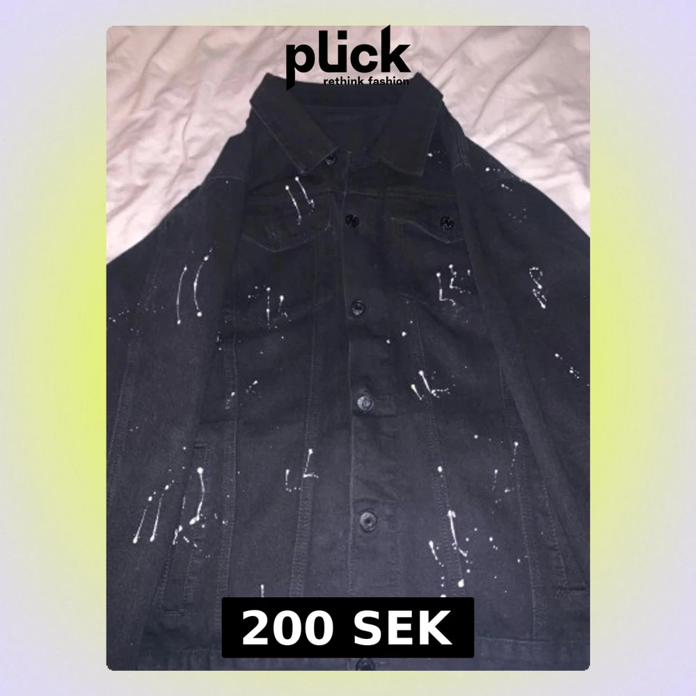 Svart jeansjacka med vit färgstänk - 0 Svart jeansjacka med vit färgstänk - 1