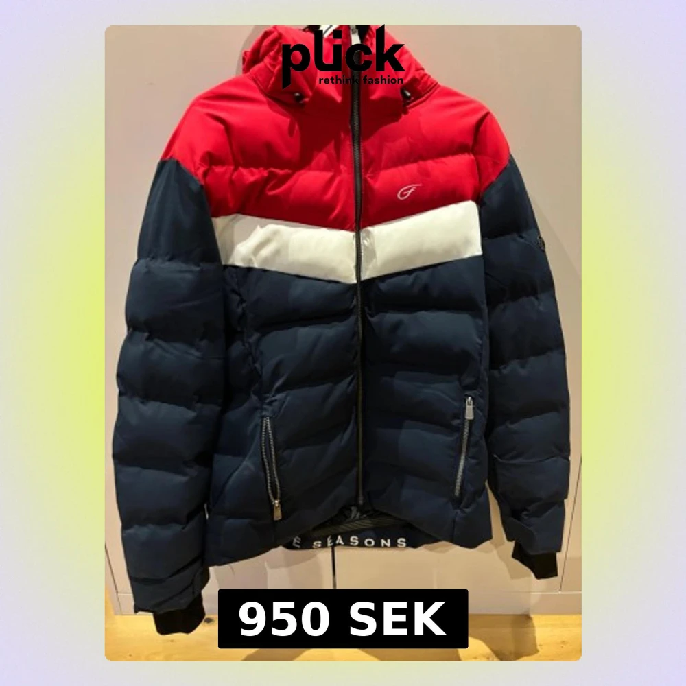 Snygg pufferjacka från Five Seasons med färgblock i rött, vitt och mörkblått. Jackan har huva, två dragkedjefickor och logga på bröstet. Perfekt för kalla dagar med sin tjocka vaddering och sportiga look. Designad i Sverige, med coolt tryck på insidan. Parfekt till vintern