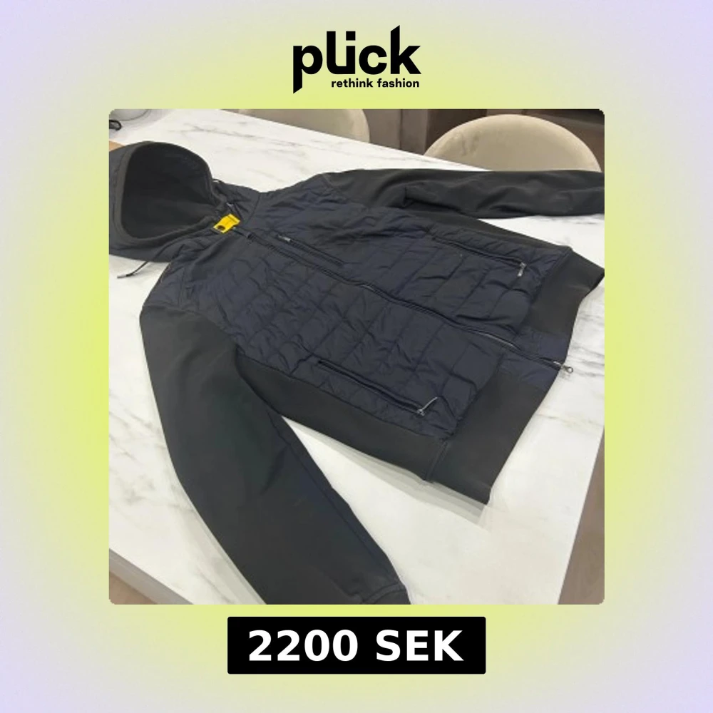 Svart pufferjacka från Parajumpers i storlek XL. Jackan har quiltad front, släta ärmar, huva med dragsko och flera dragkedjeförsedda fickor. Materialmix av fleece och syntet ger både värme och stil. Snygg gul detalj vid halsen och klassisk logga på ärmen.det står att det är storlek XL men det passar änven som L