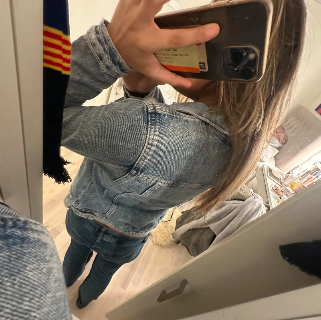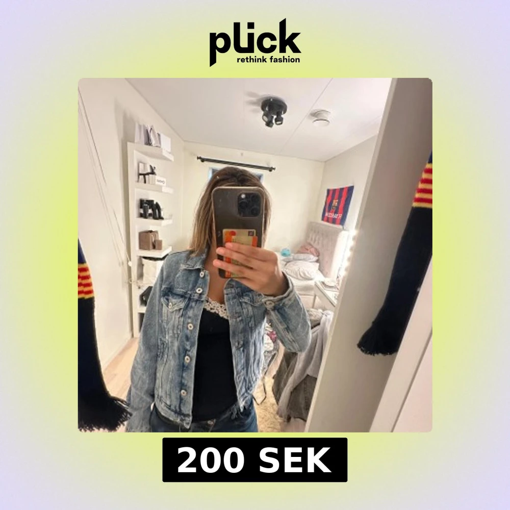 Säljer en klassisk ljusblå jeansjacka med snygga silvriga knappar framtill. Jackan har en rak passform, två bröstfickor med lock och långa ärmar. Perfekt att slänga över en hoodie eller t-shirt för en chill look.