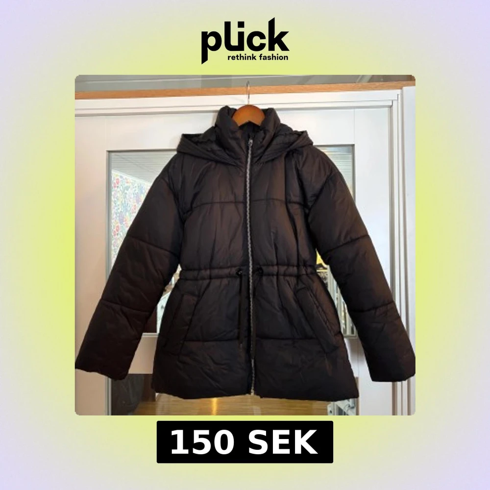 Snygg svart vinterjacka med huva från Vero Moda. Jackan har en justerbar midja för bättre passform. Perfekt för kyliga dagar. Knappt använd.