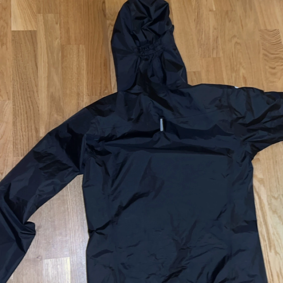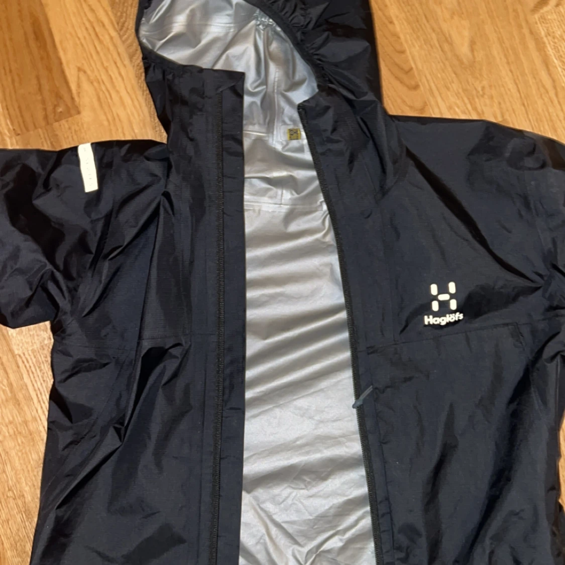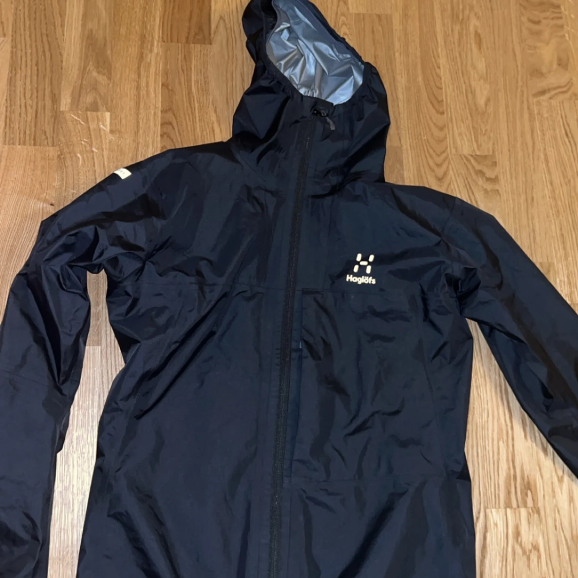 Säljer en svart vindjacka från Haglöfs med huva och dragkedja. Jackan har långa ärmar och är perfekt för blåsiga dagar. Den är tillverkad i ett slitstarkt syntetmaterial och har en stilren design med Haglöfs logga på bröstet. Den är helt oanvänd, har provat den en gång då den var för liten. Priset kan diskuteras!