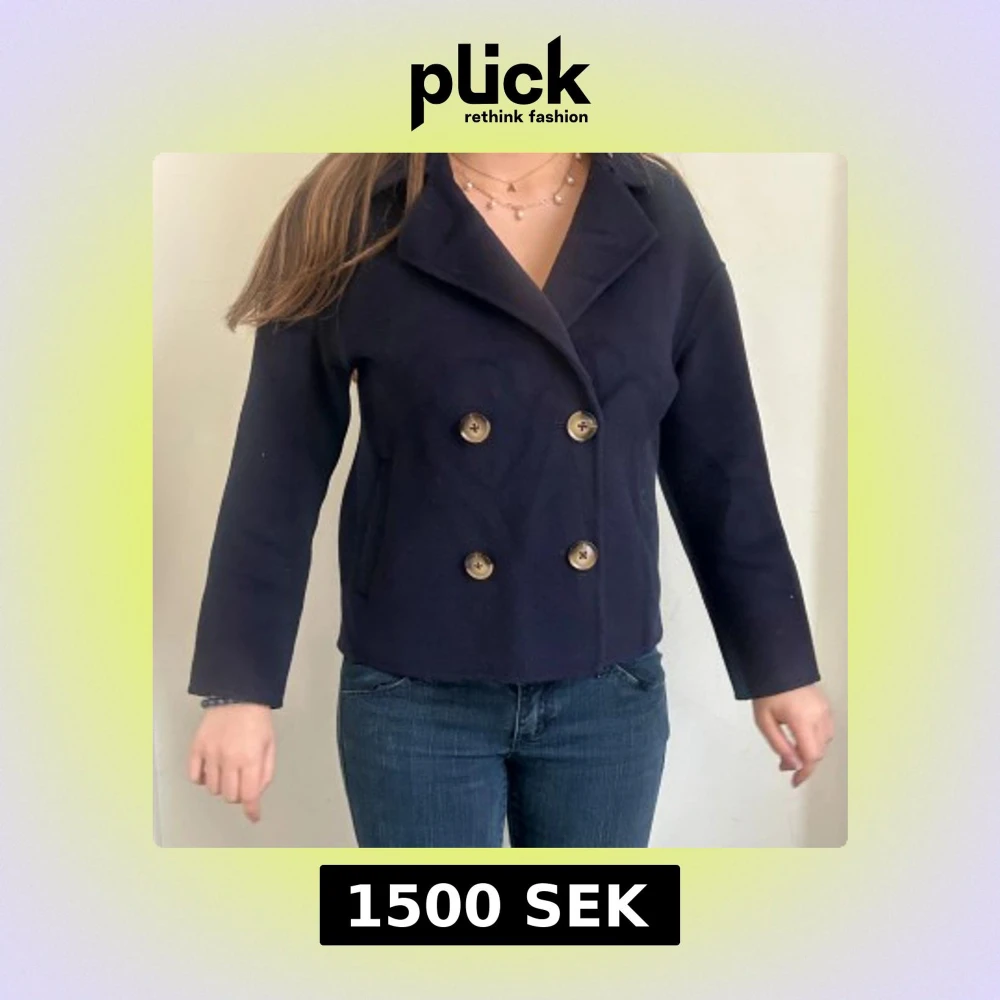 Säljer en klassisk mörkblå skepparkavaj med dubbelknäppning och bred krage. Jackan har långa ärmar och en stilren design som passar perfekt till jeans eller kjol. Enkel att matcha och ger en snygg look.