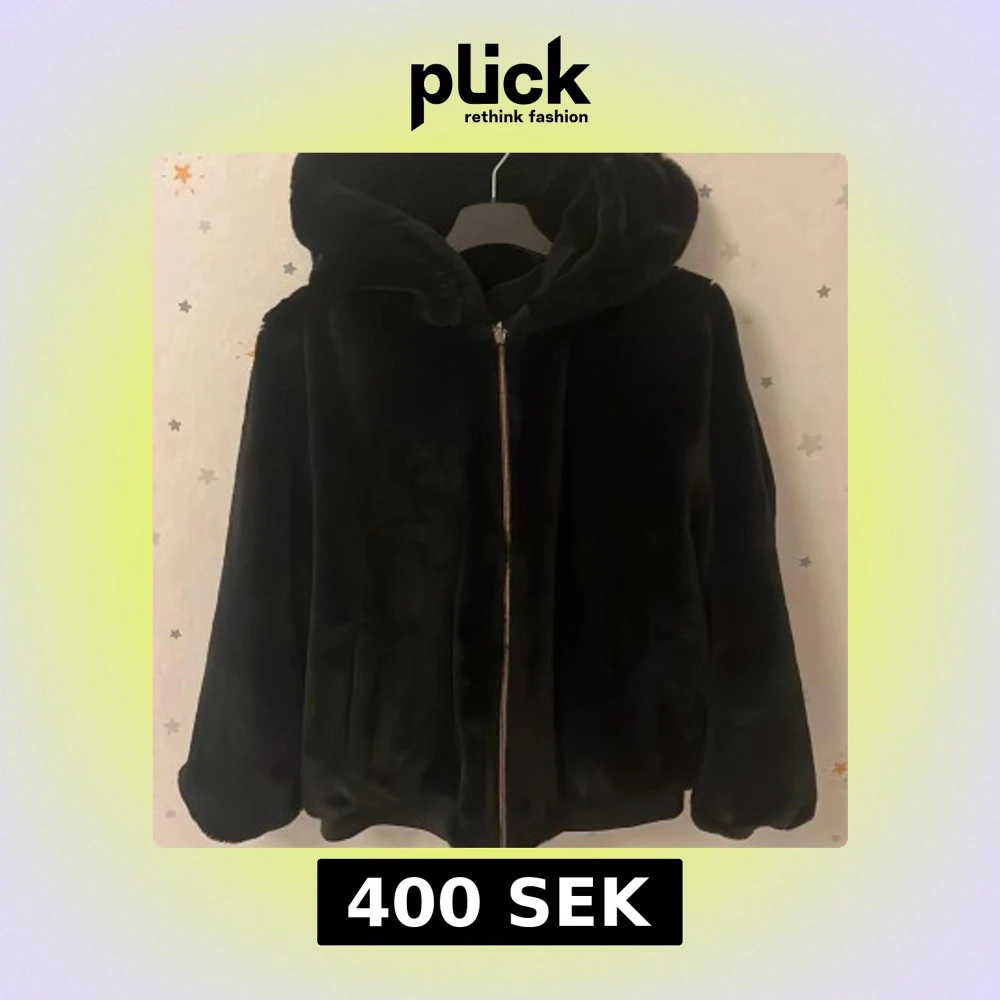 Snygg svart pälsjacka med huva och dragkedja framtill. Jackan har en mjuk och lyxig känsla, perfekt för kyligare dagar. Den har en stilren design med långa ärmar och en bekväm passform. Det är liksom 2 jackor i en🤩