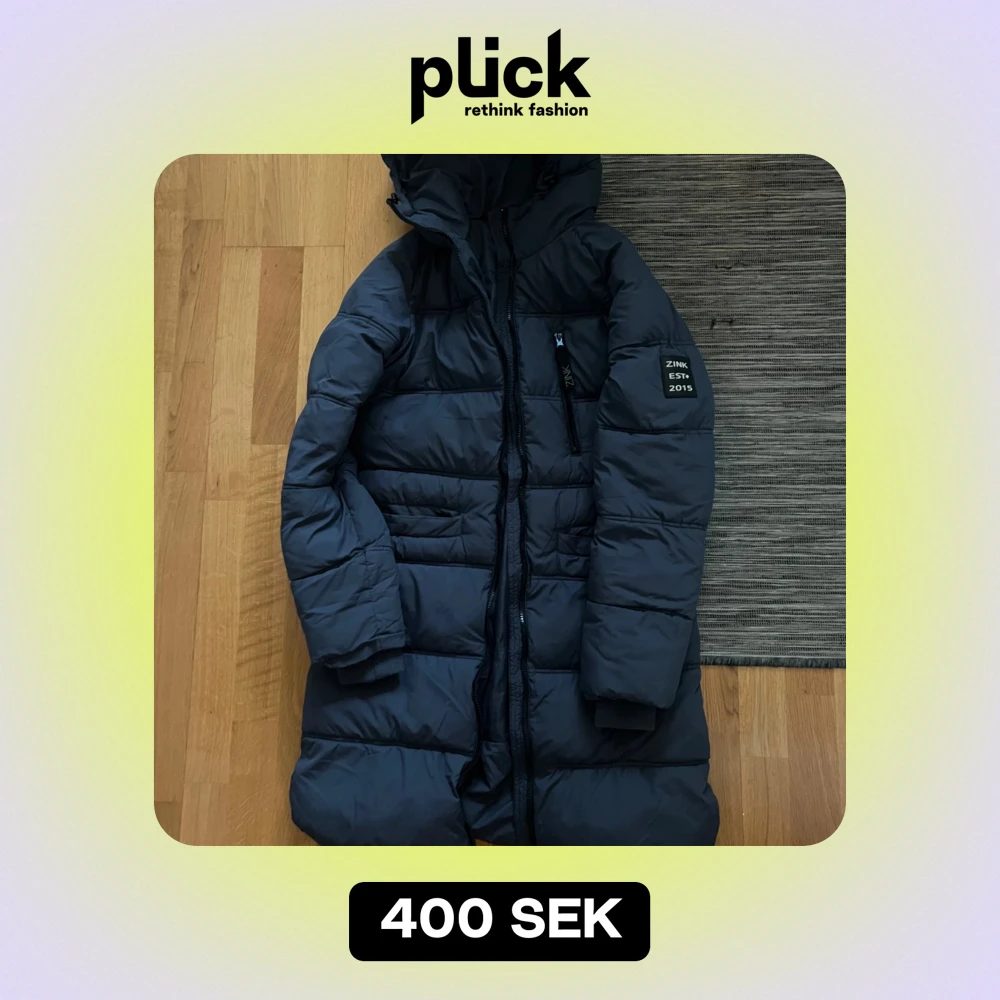 Säljer en mörkblå lång dunjacka från Zink, perfekt för kalla vinterdagar. Jackan har en praktisk huva och dragkedja framtill. Den är i mycket bra skick och har en stilren design med en liten logga på ärmen. Perfekt för både vardag och vinteraktiviteter!