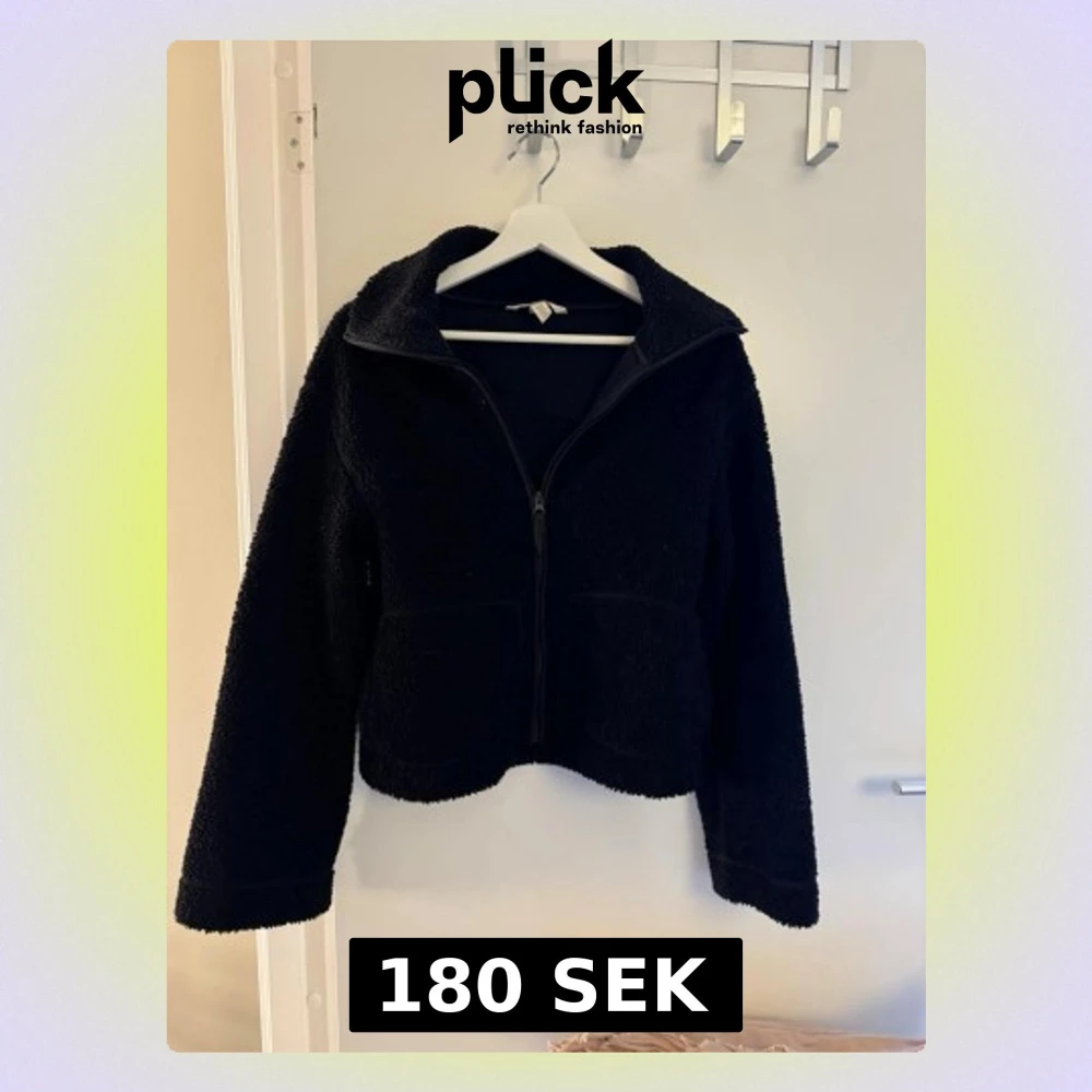 Mysig svart teddyjacka med hel dragkedja framtill och två stora fickor. Jackan har en hög krage och är långärmad, perfekt för kyliga dagar. Materialet är fluffigt och ger en avslappnad look.