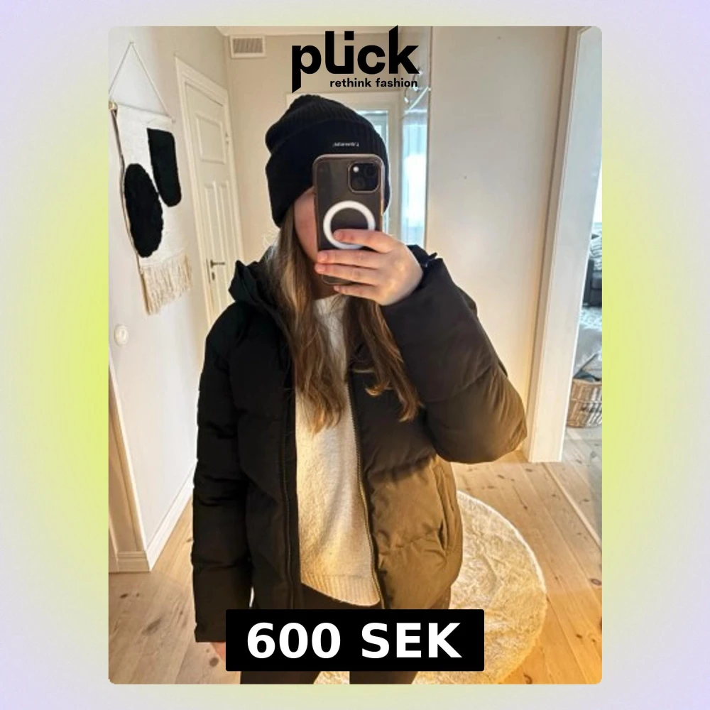 Säljer en svart pufferjacka med huva och dragkedja framtill. Jackan har en clean look, är vadderad och har långa ärmar. Perfekt för kalla dagar när du vill vara både varm och stilren. Köpt för 800kr på Stadium förra året, endast använd ett fåtal gånger.
