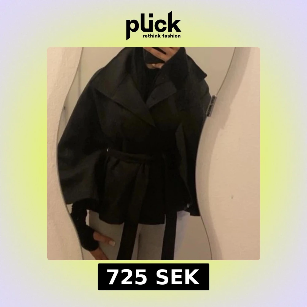 Snygg svart poncho jacka med bred krage och bälte i midjan som ger en cool siluett. Jackan har en loose passform och långa ärmar, perfekt för dig som gillar en stilren och enkel look. Materialet känns mjukt och har en matt finish.