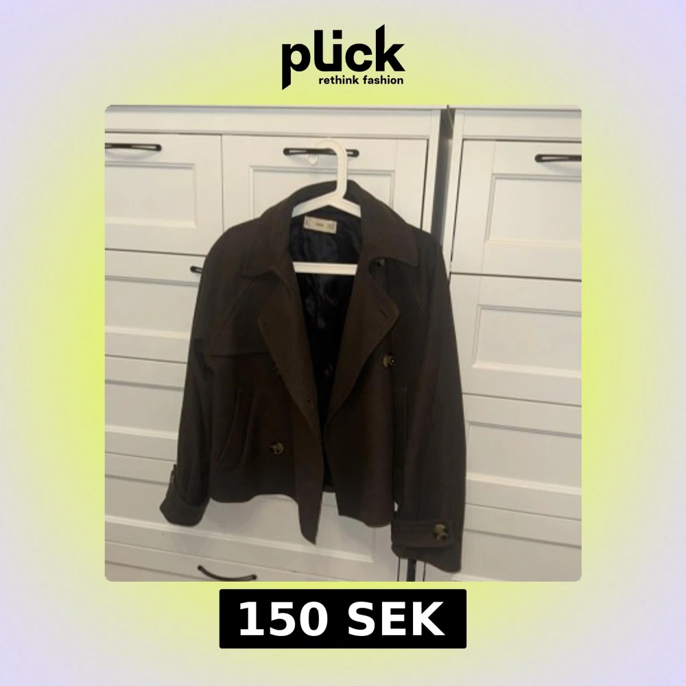 Stilren militärgrön skepparkavaj från MNG i kortare modell med bred krage, dubbla knapprader och snygga detaljer vid ärmsluten. Jackan är fodrad och har två fickor framtill. Saknar en knapp längst ner (andra bilden) men syns knappt!