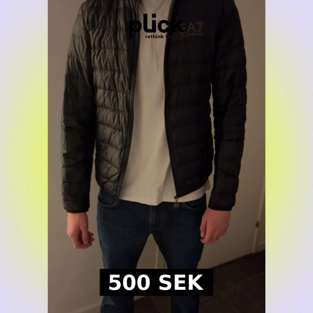 Säljer en svart, lätt och quiltad dunjacka från EA7 Emporio Armani. Jackan har dragkedja framtill, hög krage och diskret logga på bröstet. Perfekt för dig som vill ha en stilren och sportig look under kyliga dagar. Pris kan diskuteras