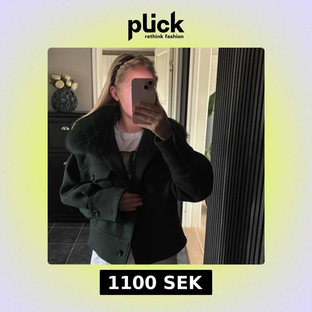 Mörkgrön jacka med pälsdetalj - Köpte för 2 månader sen så helt nysick Snygg mörkgrön jacka med stor pälsdetalj på kragen. Jackan har en oversized passform och knappar framtill. Perfekt för kyliga dagar med stil.