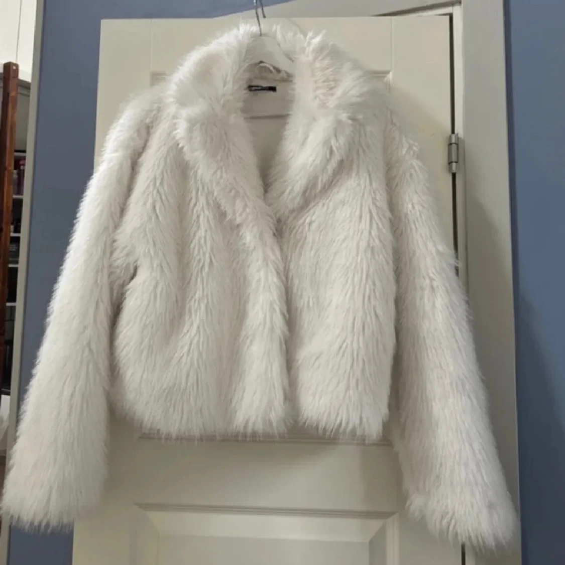 Vit pälsjacka