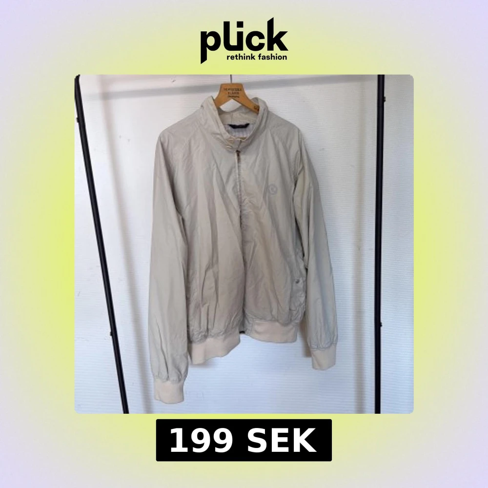 Snygg beige vindjacka från Henri Lloyd i storlek XXL. Jackan har ribbade muddar, dragkedja framtill och ståkrage med knappar. Broderad logga på bröstet och diskret randigt innerfoder. Perfekt för dig som gillar klassisk och clean stil.