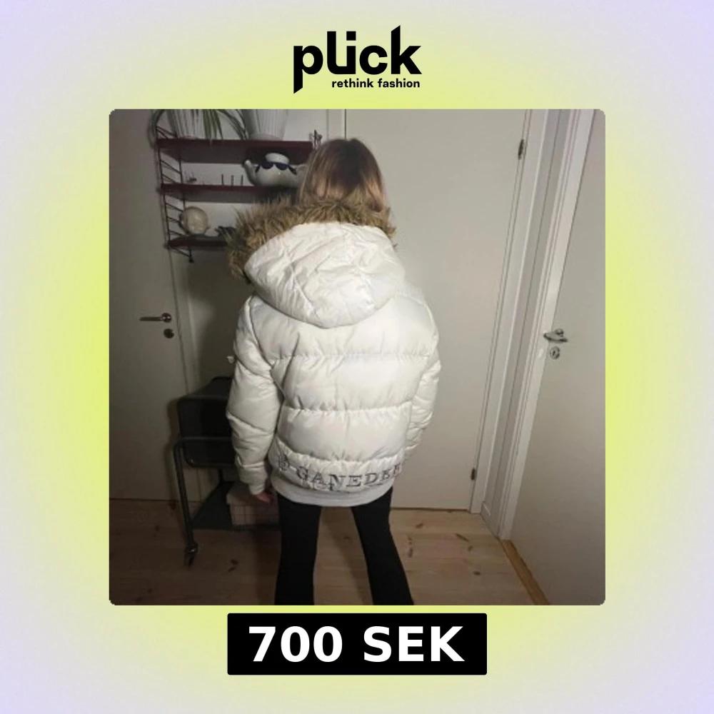 Säljer en snygg vit pufferjacka från Ganeder med en mysig pälsfodrad huva. Jackan saknar dragkedja och har ikoniska 00’s detaljer. Perfekt för kyliga dagar! Kan endast sälja den på min vinted @catwithmustach