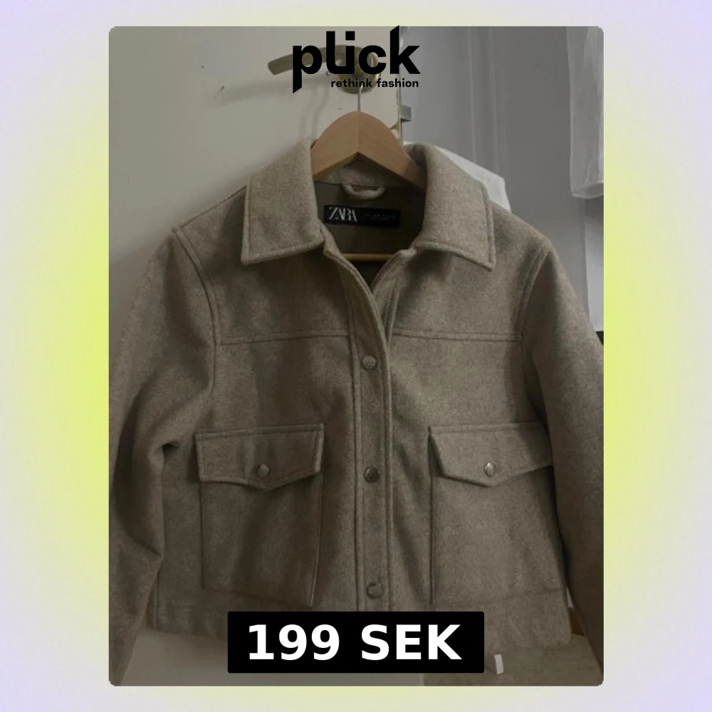 Snygg beige overshirt från Zara med klassisk krage och stora fickor framtill med tryckknappar. Jackan har en rak och loose passform, tillverkad i mjukt ullmaterial som ger en chill vibe. Perfekt att slänga över en hoodie eller t-shirt för en laidback look.