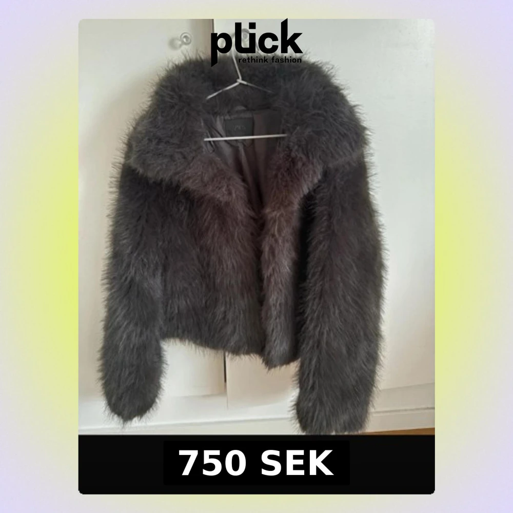 Säljer en fluffig och snygg mörkgrå pälsjacka från Zara. Jackan har en bred krage och är helfodrad på insidan.