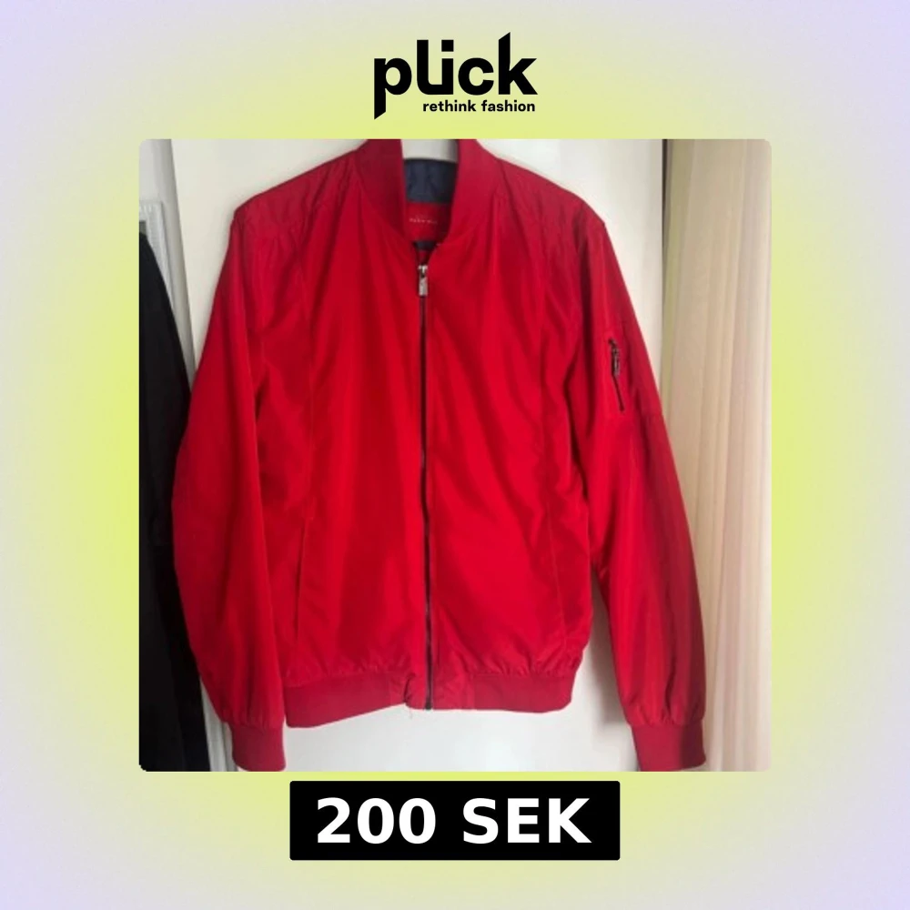 Snygg röd bomberjacka från Selected Homme med klassisk ribbad krage och muddar. Jackan har dragkedja framtill och en extra ficka med zip på ärmen. Perfekt för dig som vill sticka ut med färg och stil.