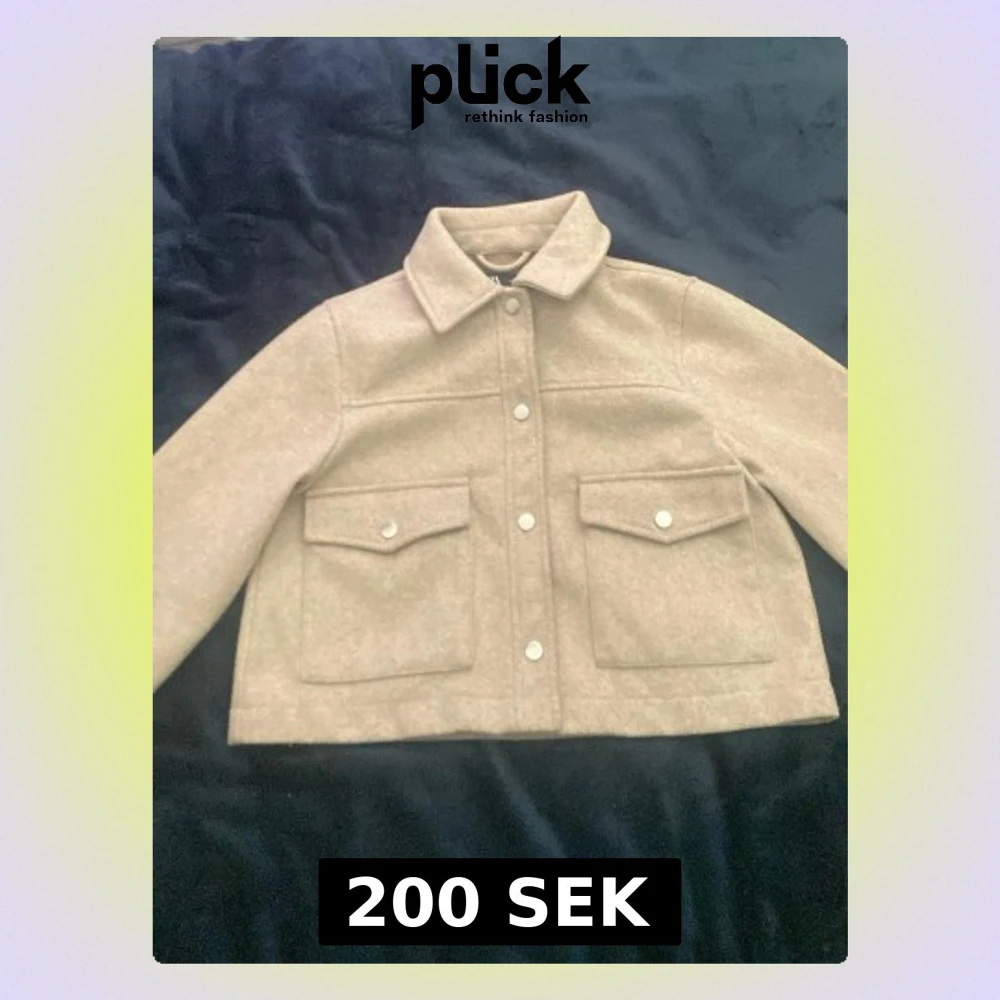 Säljer en beige jacka från Zara i ullmix. Jackan har stora fickor framtill med lock och tryckknappar, klassisk krage och croppad passform. Perfekt att slänga över en hoodie eller t-shirt för en chill look.