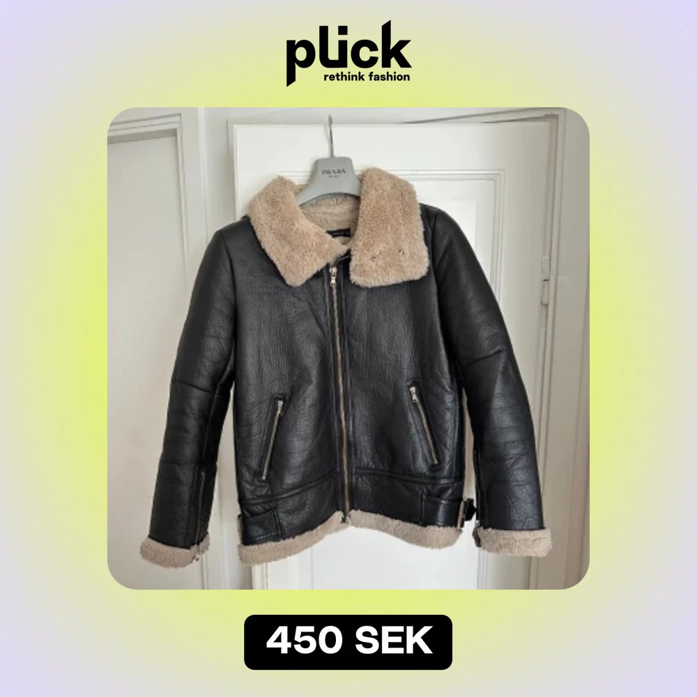 Superfin läderjacka från Zara. Metalldetaljer i guld. Något missfärgad fåll.