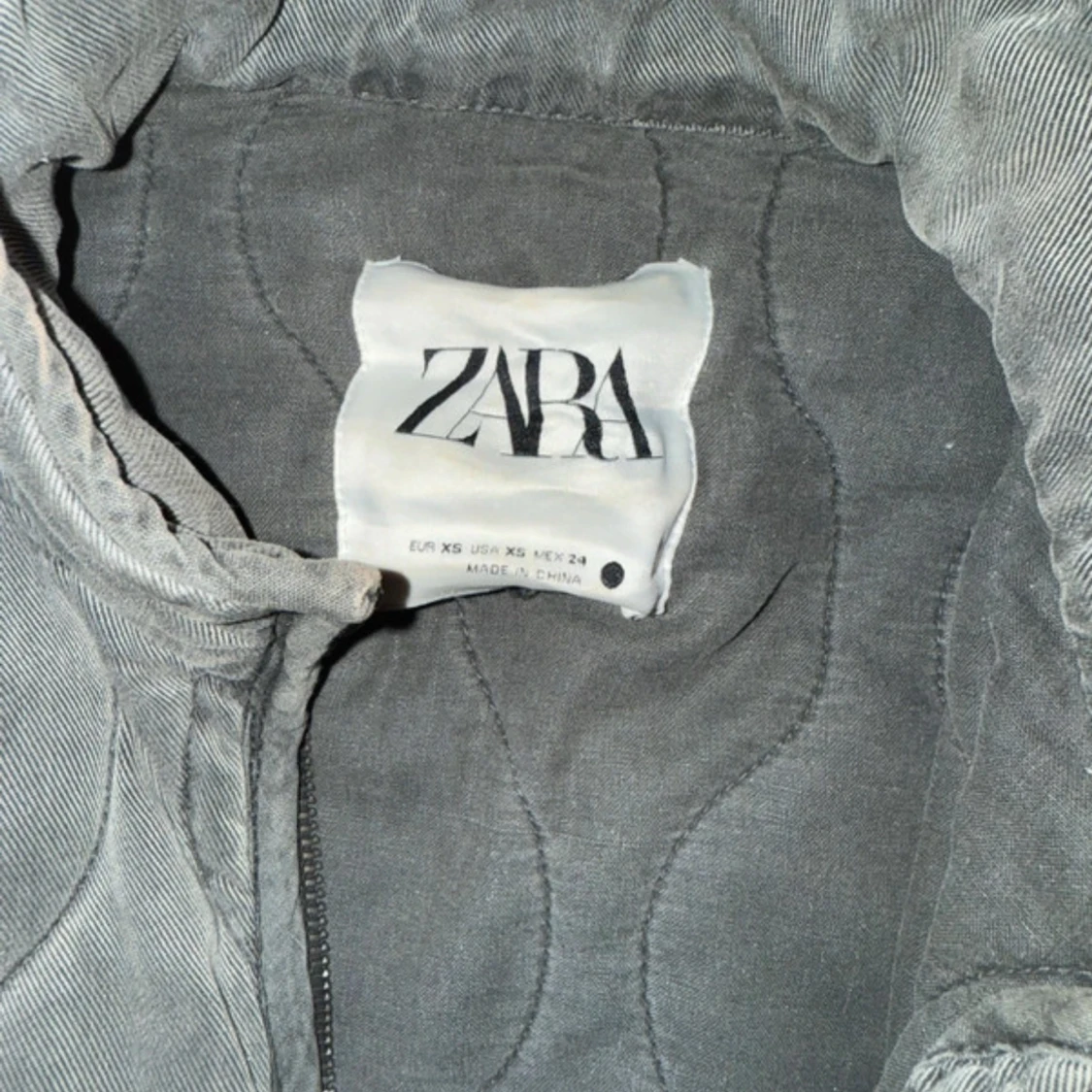 Quiltad jacka från Zara i grå manchester med vågigt mönster. Jackan har två stora fickor framtill, hög krage och dragkedja. Den har en loose passform och är perfekt för dig som gillar chill och trendig stil.