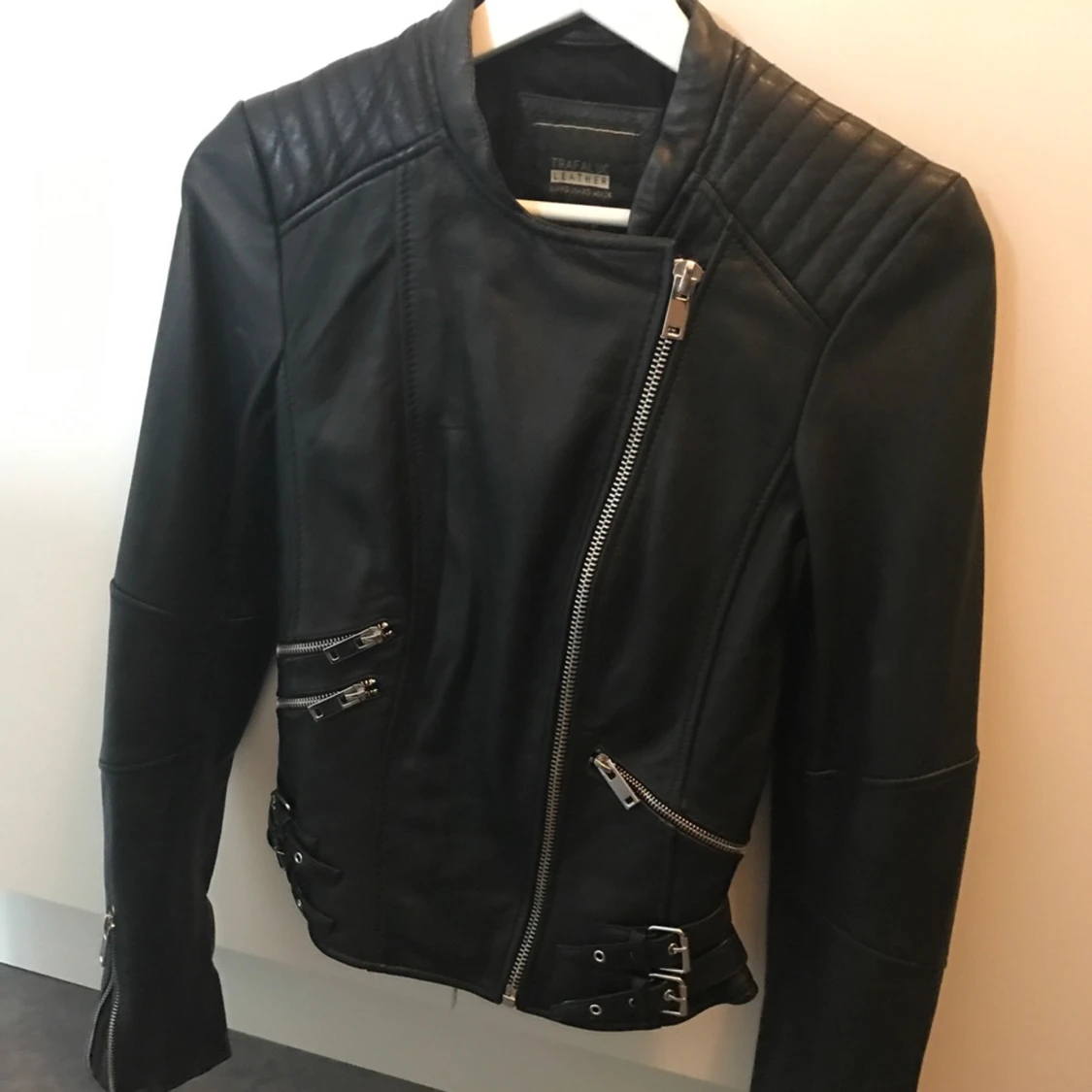 Leather jacket from Zara, only used a few times. Has a slimming fit. Äkta läder jacka från Zara som sitter figurformat på.